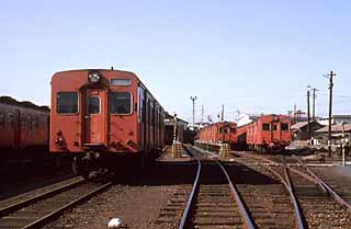 キハ35系は、大都市近郊の非電化区間の改善のため'61年から関西線湊町口に投入された通勤型気動車である。外吊式の両開扉にロングシートが特長で、片運トイレ付の35形、片運トイレ無の36形、両運トイレ無の30形が存在した。 寒冷地向けの500番代やオールステンレス車体の900番代も登場し全国に配置された。但し、本来の通勤用途で使用されたのは関西線、川越線、筑肥線などであり、その他の線区では他の一般型気動車と混用されていた。 全413両が製造されたが、ローカル閑散線区での寒々としたロングシートは不評であった。私も上記に紹介した通り、各地でキハ35系には出会ったが、乗るのは決まって旅行気分が味わえる併結された20系等のクロスシート車の方だった。 '84年から廃車が始まり、近年では関東鉄道常総線に譲渡された車両も'13年に運行終了した。久留里線で最後まで稼働していた3両の内1両が譲渡先の水島臨海鉄道で運用されており、同じく水島臨海鉄道には機器流用されたキハ38形が1両譲渡されている。 |